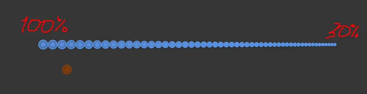 Как развесить бусы с изменением их диаметра по длине сплайна? Желательно максимально процедурно. Array приручить не получилось, бусины масштабируются, но оффсеты берет с оригинального размера и остаются промежутки. По идее скаттер бусин по сплайну по градиентной маске в скейл должен решать задачу, но что то не выходит у меня. Есть вариант раскидать arrayем по прямой, поправив руками промежутки+ pathdeform, но при большом числе сплайнов вариант так себе.