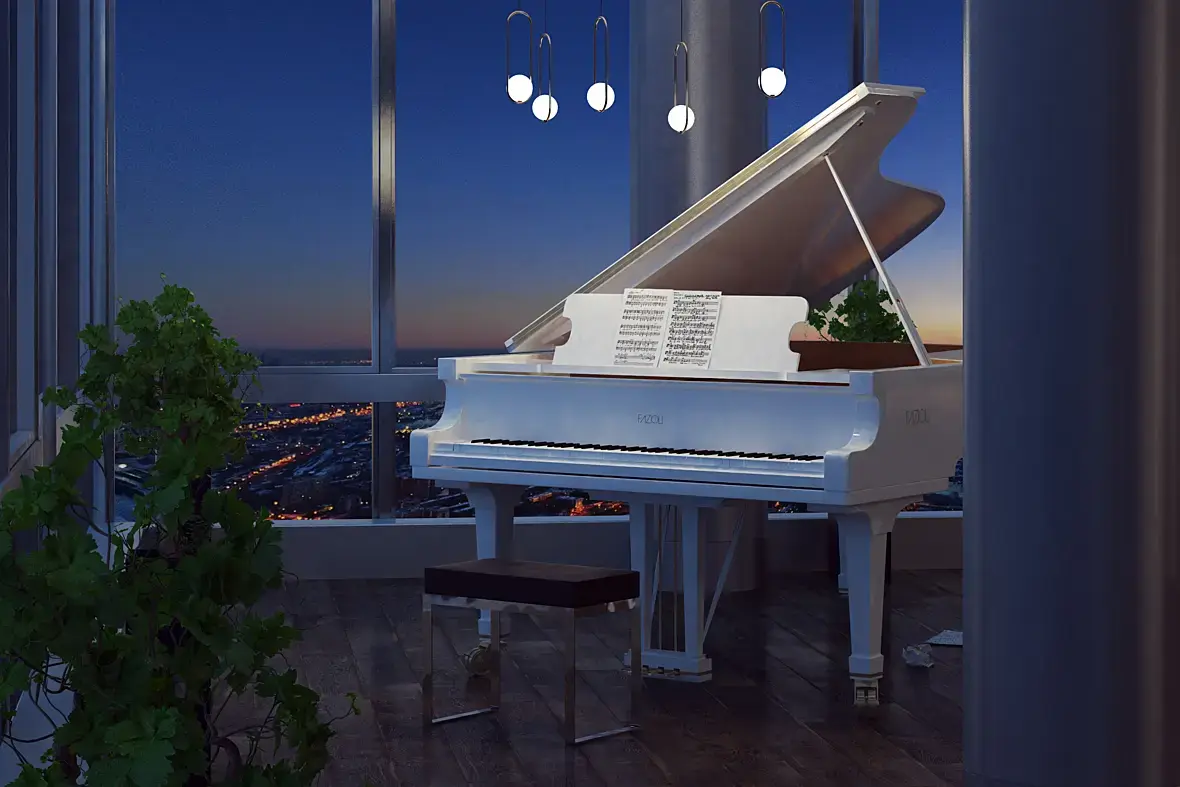 10) Ну что за табуретка из нержавейки перед таким роялем?