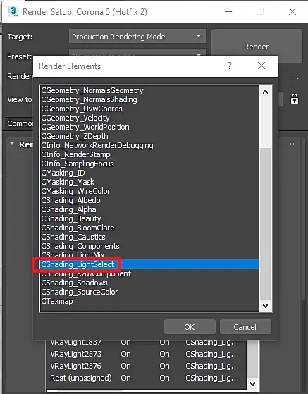 После того как вы создали все необходимые сценарии, лучше удалить каждый отдельный элемент освещения из списка рендер элементов. На выходе мы получаем несколько рендер элементов с разными сценариями света.