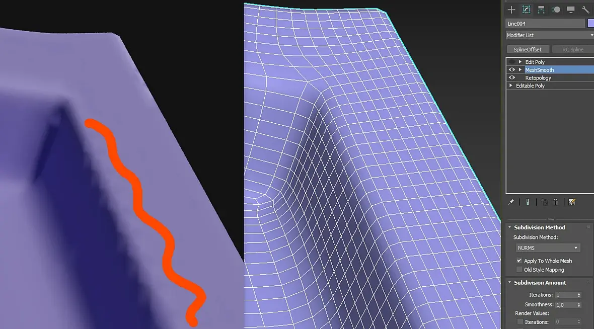 У MeshSmooth бывают глюки. Можно попробовать заменить его на TurboSmooth.