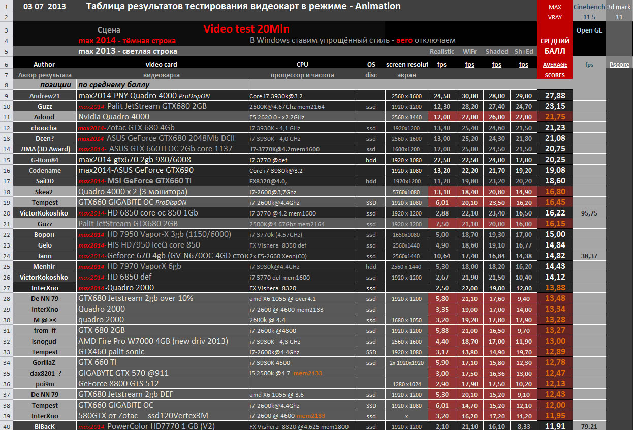http://3ddd.ru/forum/thread/show/video_test_20mln_max2013  - сравнение производительности видеокарт