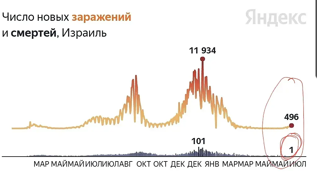 К чему вы показываете диаграмму которая говорит о том же самом? Люди заражаются. Но гораздо меньше чем раньше (по крайней мере пока) смертонсоть - 1 за сутки. При этом ещё не факт что это привиты. К сожалению это графики не показывают. Но привиты там 55% вроде. Т.е есть кому заболевать. Ну и заболевшие не равны госпитализированым в тяжёлой форме. На данный момент и первый и второй график говорят, что даже с новым штамом говорить о прежней нагрузке на систему здравоохранения преждевременно.