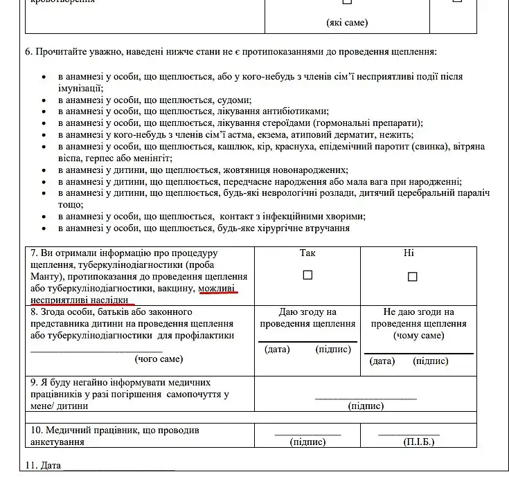 в нашей анкете перечисленны возможные побочки и ты подписываешь, что ознакомлен. жаль что я не сфоткал нашу анкету