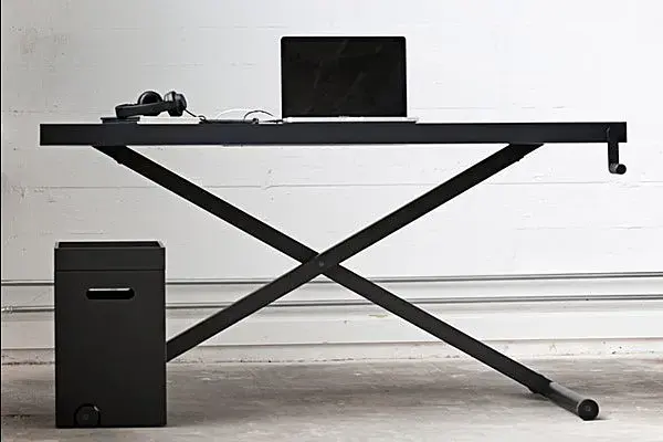 Я бы сделал обычный стол с поднимающими ножками, а не подвесной механизм.