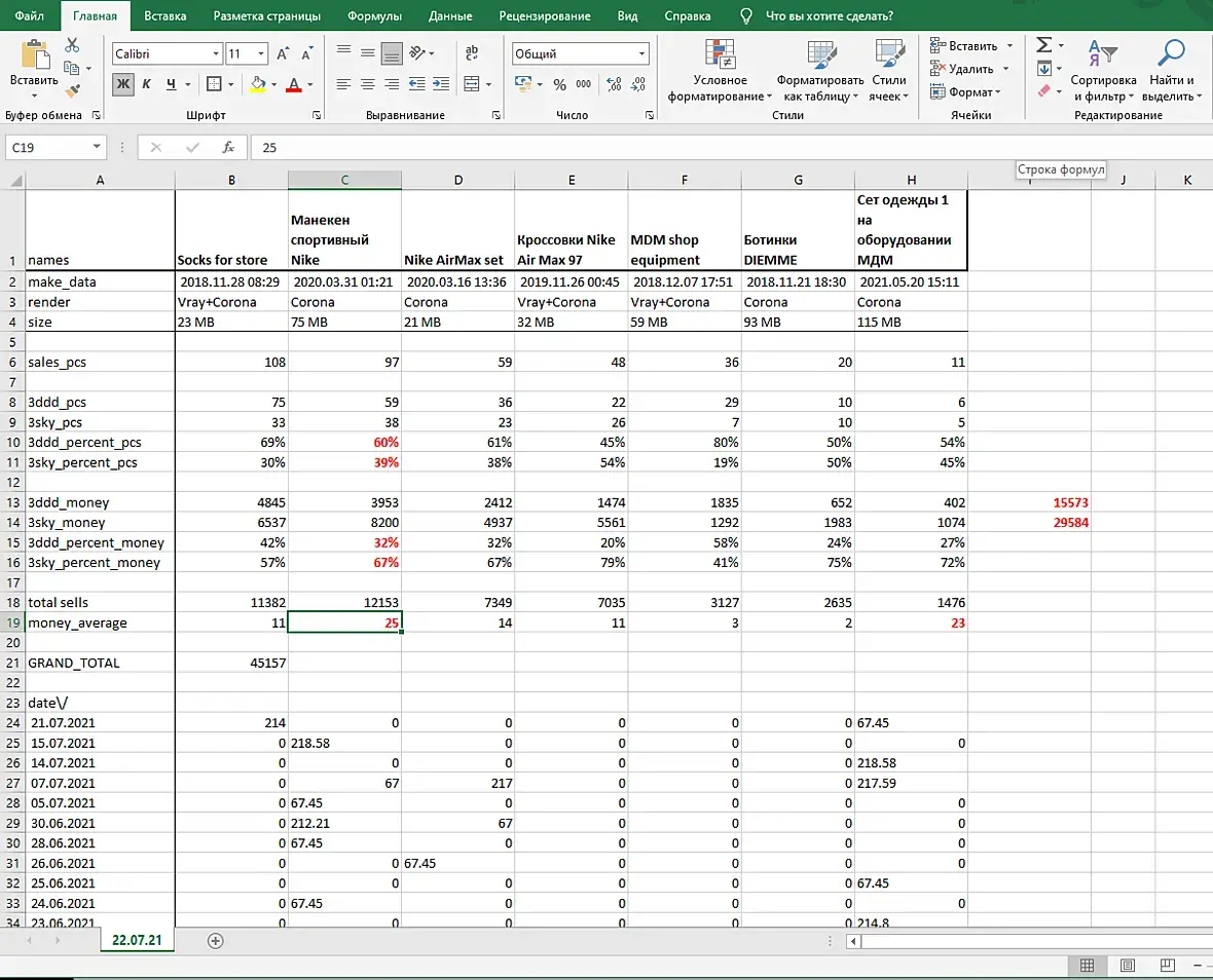 А вот действительно удачной моделью оказался “Манекен спортивный Nike” – он продается быстрее всех – 25 руб./день. А еще интересно, что несмотря на ~ в два раза меньшие продажи Манекена на 3dsky, 3dsky принес в два раза больше денег. Какой вывод из этого я могу сделать? Вероятно, что данная модель будет пользоваться хорошим спросом на иностранных стоках. Чего, например, не скажешь про мою модель “MDM shop equipment”, которую покупали, в основном, на 3ddd.