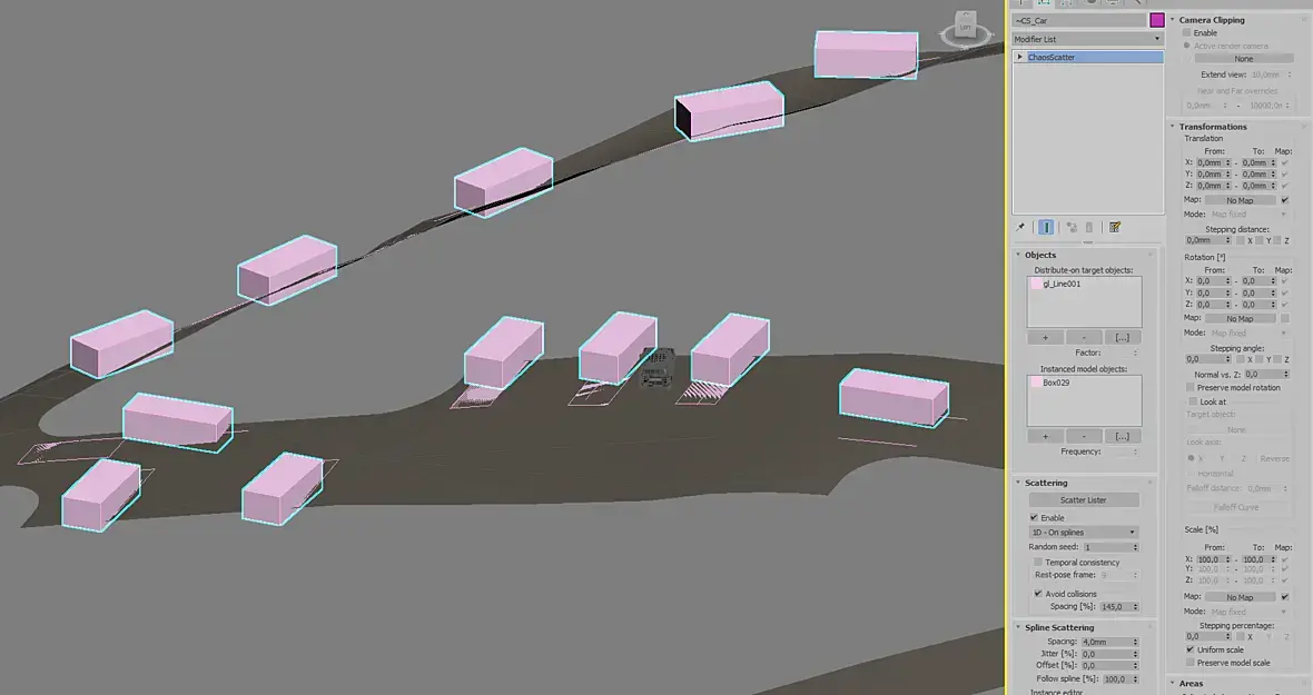 danmer68, conform модификатор с 24версии макса вроде, нужен, чтобы сплайн на поверхность спроецировать. авто раставлять по сплайнам spacing tool, можно через скатер и потом в меш извлеч, но тогда вроде не будет инстансов. машинки искажаются потому что там заданы рандомные повороты их можно либо в ноль либо поменьше поставить, они зад и перед поднимают\опускают