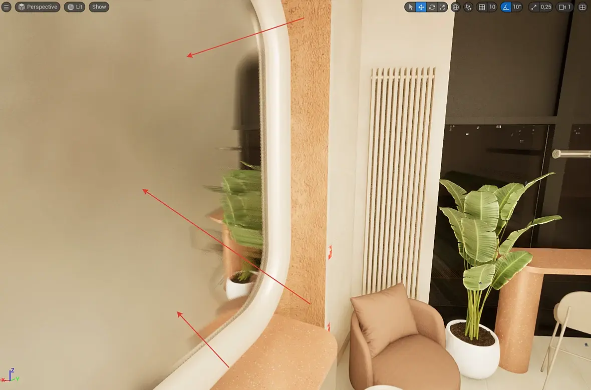 Привет. Тема называется Screen Space Reflections. Это отражения в экранном пространстве. То есть отражаться у тебя будет только то, что видно на на экране. А Planar Reflection это совсем другое: создается камера и рендерит отражения в этой плоскости. Эти техники легковесные, но результат не совсем физически корректный будет.