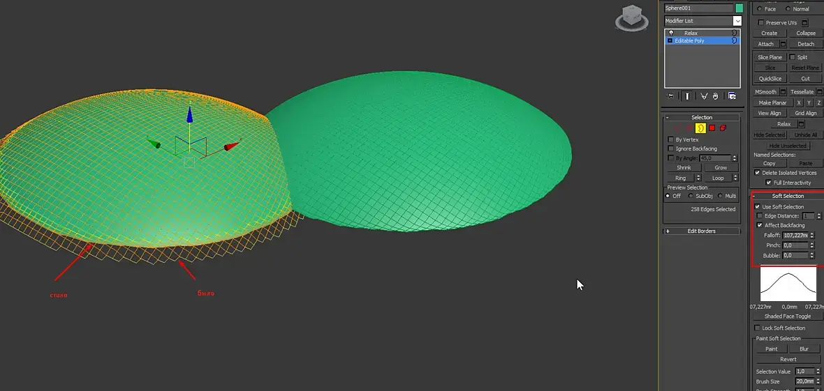 А, ну короче все проще. Выбираете открытую грань (цифра 3) выделяете то, что нужно сгладить, врубаете Soft Selection, на уровень первого или второго этажа ребер, и, как показал ViTcore сглаживаете релаксом