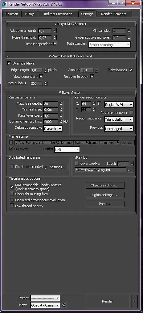 Настройки v-ray: