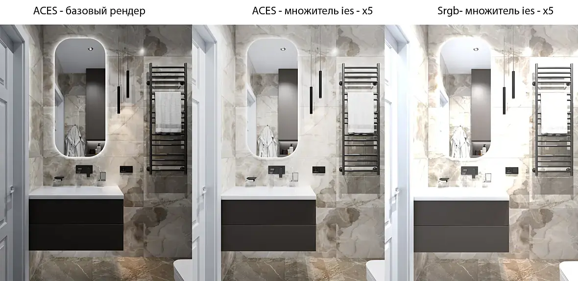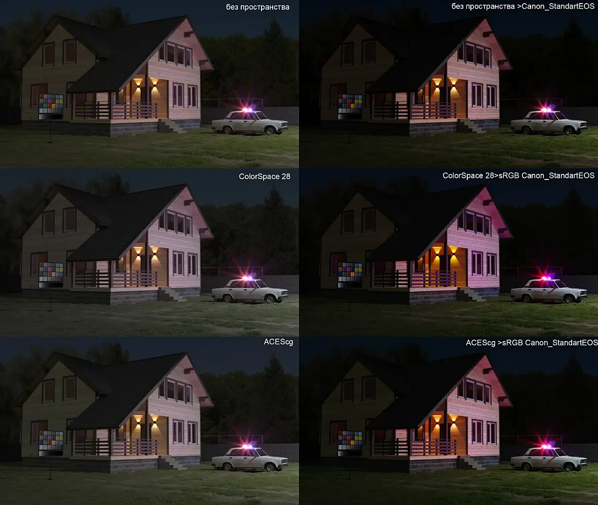 В данный момент я еще не разобрался в температуре короновских ис. что именно нужно корректировать мой профиль или цвет источников.Над дверью ис температура 3000K, на ночном рендере слишком насыщенными кажутся. Как я и предупреждал ACEScg "зеленит".