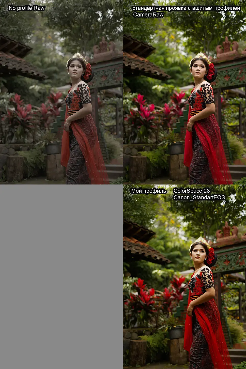 Я приведу тесты профилей для короны. Можно использовать и свои цветовые профили для короны. Если вы когда обрабатывали raw снимки то знаете что чистый raw без цветового профиля очень блеклый и цвета не насыщенные. Но если вы сфотаграфируете например цветной лазер, то на raw снимках(без цветового профиля) насыщенность будет максимальной. Проще говоря существуют абсолютно насыщенные цвета и диффузые(слабо насыщенные) .Диффузные цвета в большинстве своем влазят в srgb диапазон. При проявке raw насыщенность диффузых цветов увеличивается до уровня вашего монитора(srgb, dci-p3), а цвета насыщеннее srgb; dci-p3 диапазона уходят в отрицательные значения.Отрицательные значения очень хорошо видны на фото- у цветных обьектов в одом из rgb каналов чернота.