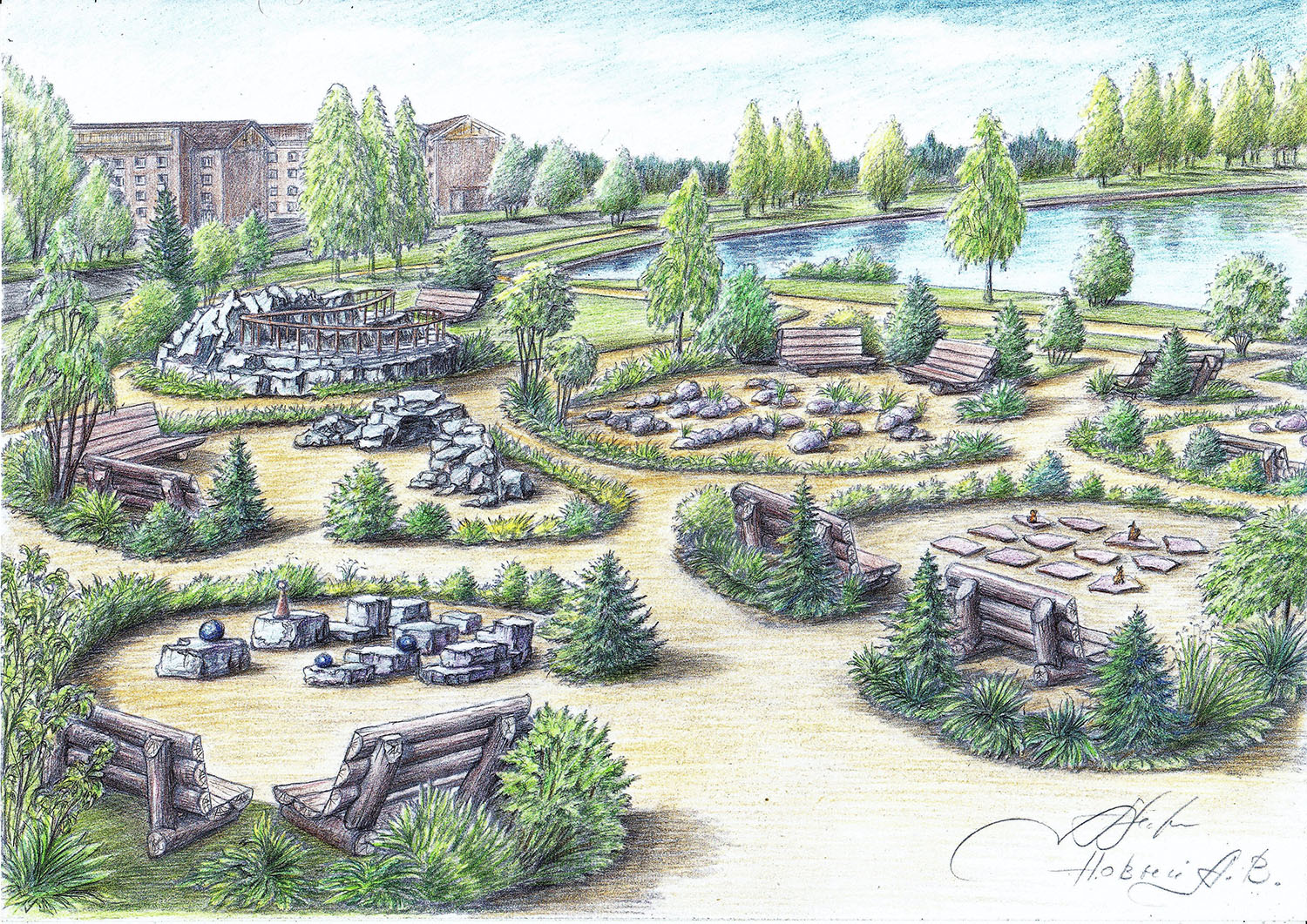 Всем доброго времени суток) Подскажите, знающие люди! Есть задание по развитию парков и прилегающих территорий небольшого посёлка в МО. В первую очередь архитектор нарисовал и прислал эскизы(ниже) по благоустройству территорий. Заказчику они понравились и нам сказали начать разработку проекта, куда будет заложена в том числе визуализации этих эскизов) По каким расценкам такое осмечивать? Будут ли влиять на трудоёмкость/стоимость сделанные фото для бэкграунда в максе, чтобы человек не делал сцены с чистого нуля, а использовал подложку?