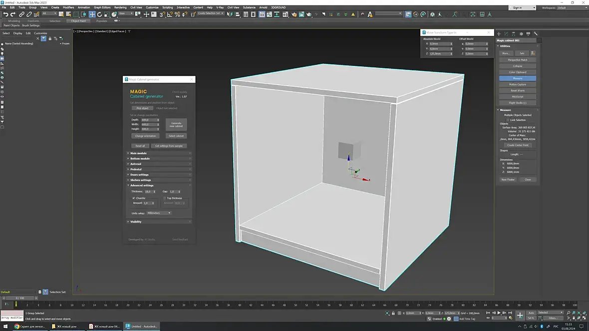 - Габарит. Например, есть ниша 2400, для шкафа и модуль создается по габаритам бокса этой ниши и получается, что нет зазоров по бокам. Возможно ли сделать что-то вроде параметра оффсет с боков? Конечно можно было бы сразу уменьшить параметры бокса, высчитав на сколько мм уменьшить, но с неточными размерами сложнее, было бы удобнее сделать все через генератор.