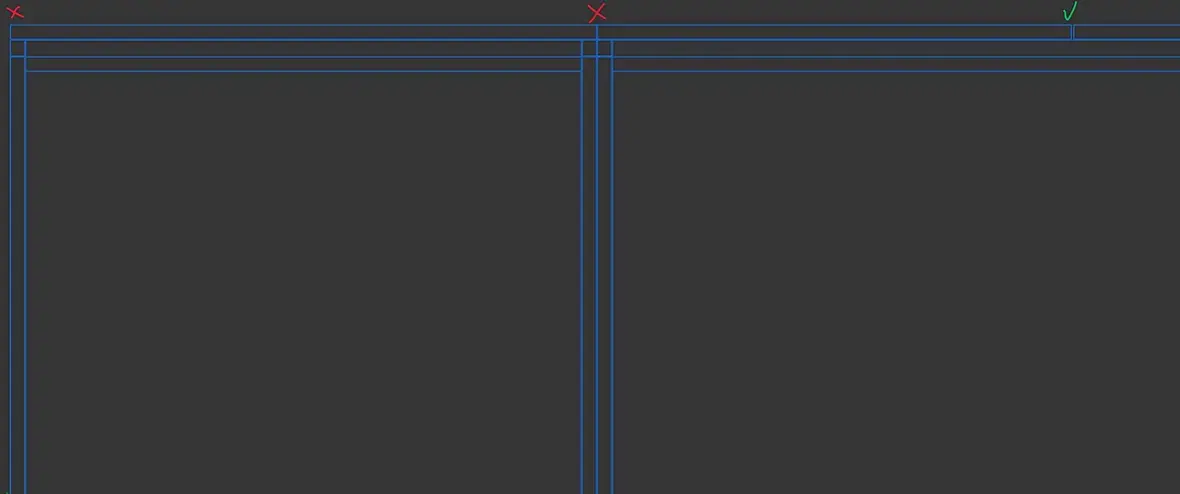 - Ситуация когда два модуля с разной шириной ставятся рядом или друг на друга и у фасадов между этими модулями нет зазора