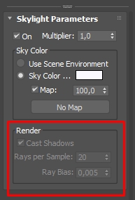 Если делаю новую сцену, ставлю бокс и добавляю Skylight, то у него галка доступна. Пробовал в старой сцене удалять и ставить заново Skylight, включать/выключать, менять туда-обратно рендер. Без толку, не доступна CastShadow и всё.