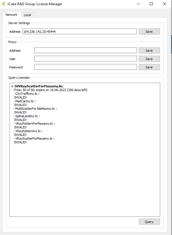 в самом окошке надпись invalid говорит, что что-то не так наверное. Хотя я когда устанавливала, вписала сервер, нажала save, потом ouery