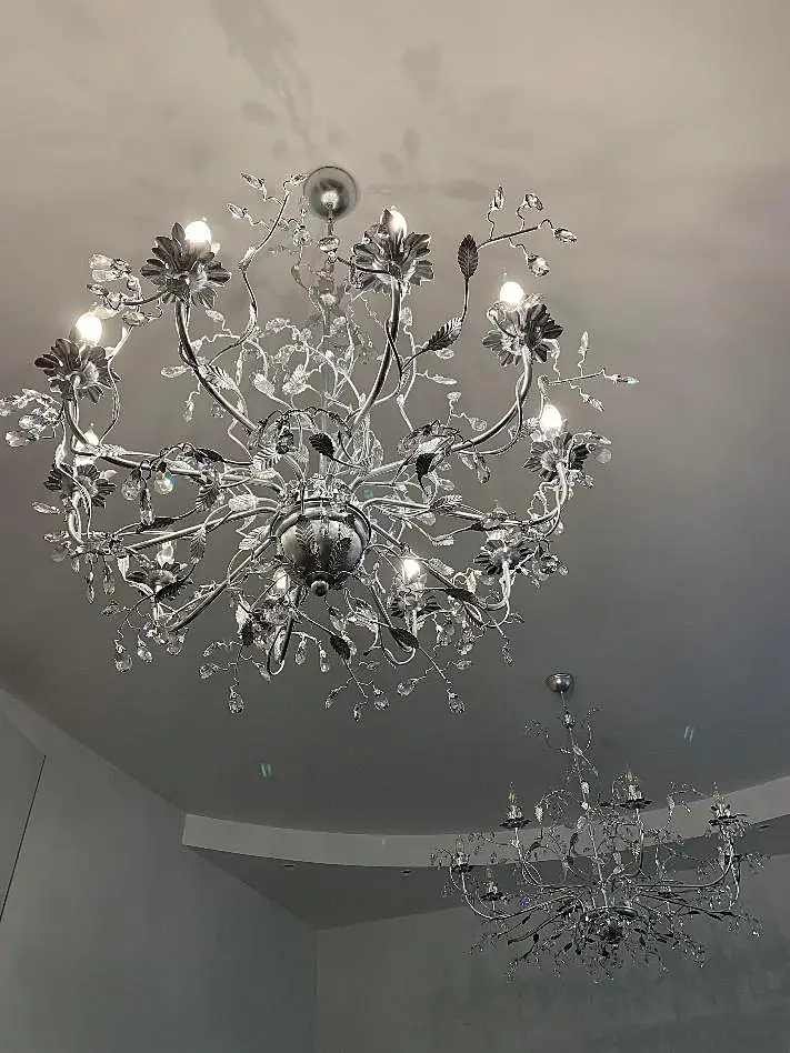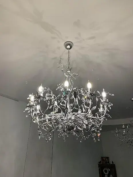 Можете у моей люстры свечки сделать пониже, покрасить всё в хром а цветочки в стекло, выкинуть несколько веток, и издалека прокатит )) Там мультисаб на всё, справитесь на раз-два.