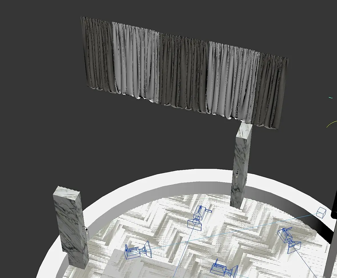 Хотя в вашем случае вполне можно бендом обойтись, радиус идеальный, если не в ту сторону гнёт, то разверните гизму у бенда, и для точности выставляйте пивот у шторы, в край шторы