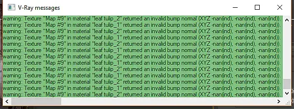 так бывает если на объектах, на которые назначен мат с бампом или нормалмапой, либо отсутствует маппинг, либо какие то проблемы с ним, либо бамп назначен в неправильный канал маппинга, проверьте не стоит ли у текстуры бампа канал 2, у библиотечных цветочков маппинг всегда в первом мап канале, иногда при конвертации в прокси мап канал объекта смещается на второй, это глюк, и перезапуск макса обычно помогает в таких случаях и просто надо заново конвертнуть в прокси
