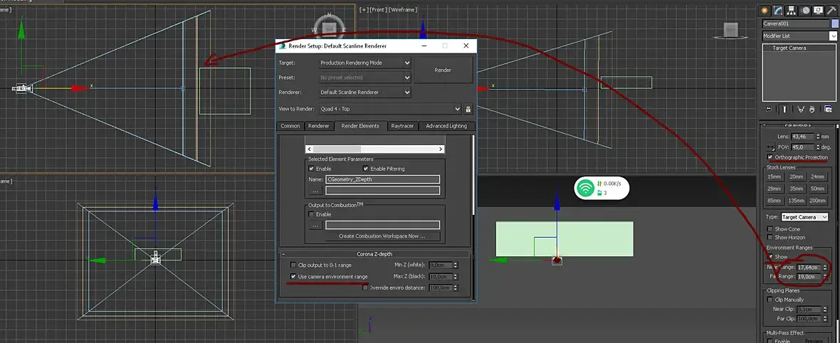 Через CGeometry_ZDepth в Corona можно. Там настройки минимальные.