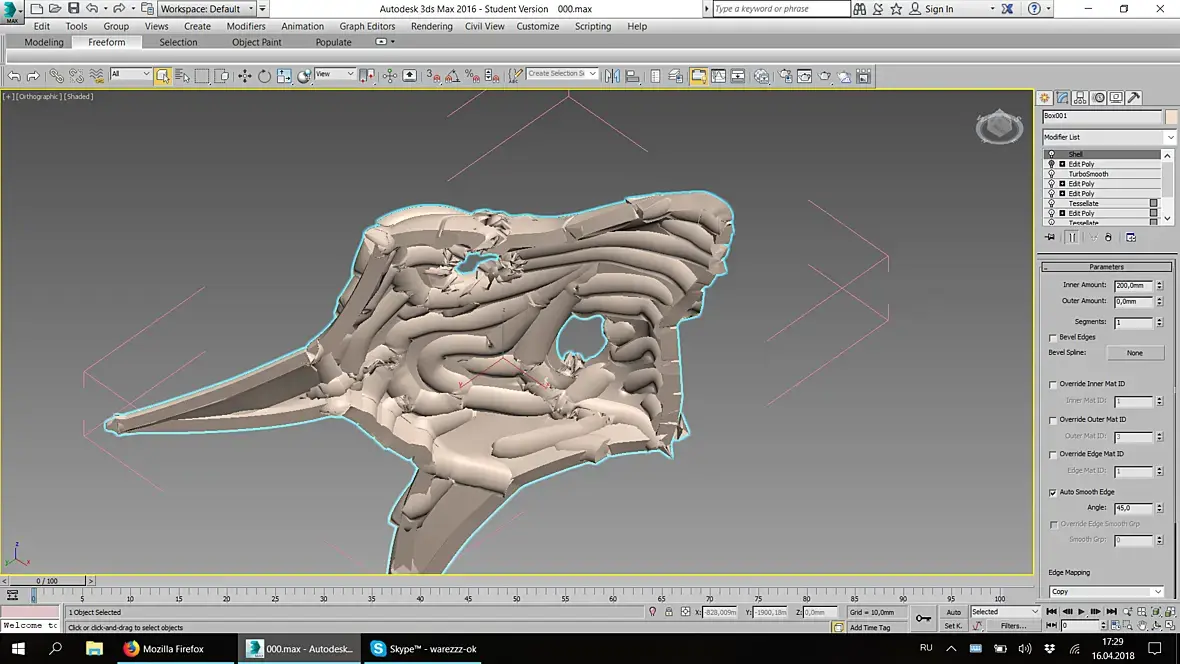 Решил попробовать ее. Получилось сделать болванку в форме маски, а вот с рельефом трещин никак не могу сладить.