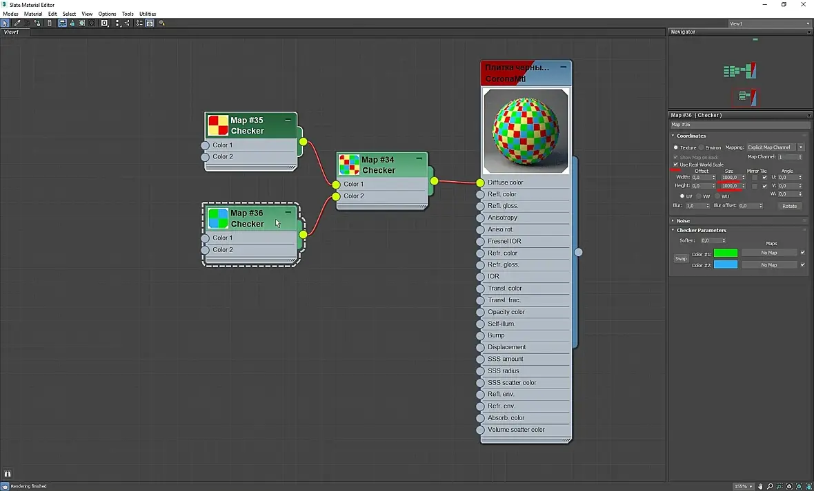 6. Копируем нашу карту Checker (с шифтом, если кто не знает)), два раза, ставим размеры уже 1000х1000 мм, я поменял цвета в карте, чтобы смотрелось нагляднее: