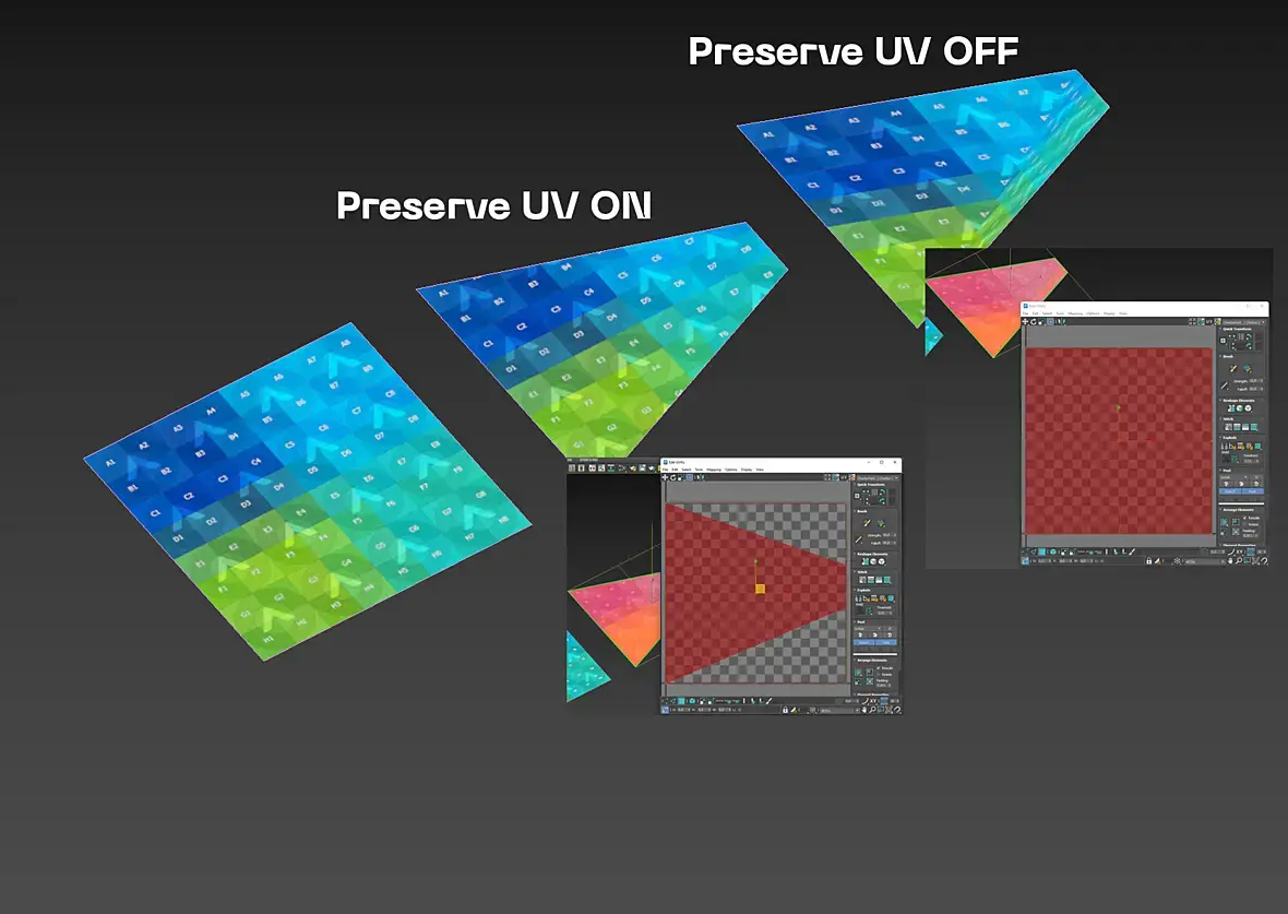 По части вашего видоса Holy3D тоже прав :) я знаю что делает preserve uv и это действительно не в тему. А если вы считаете иначе, то сделайте плейн из 2 фейсов как на моем скрине без излома, но с таким же UV (трапецией).