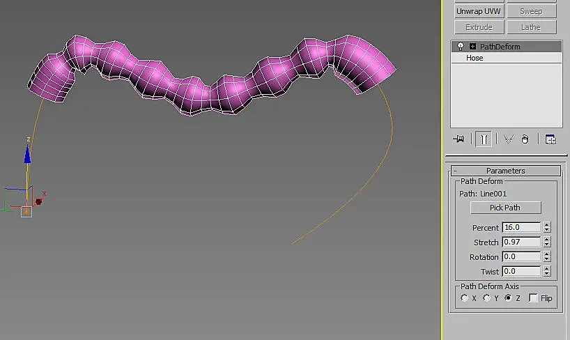 В максе есть параметрический шланг Hose