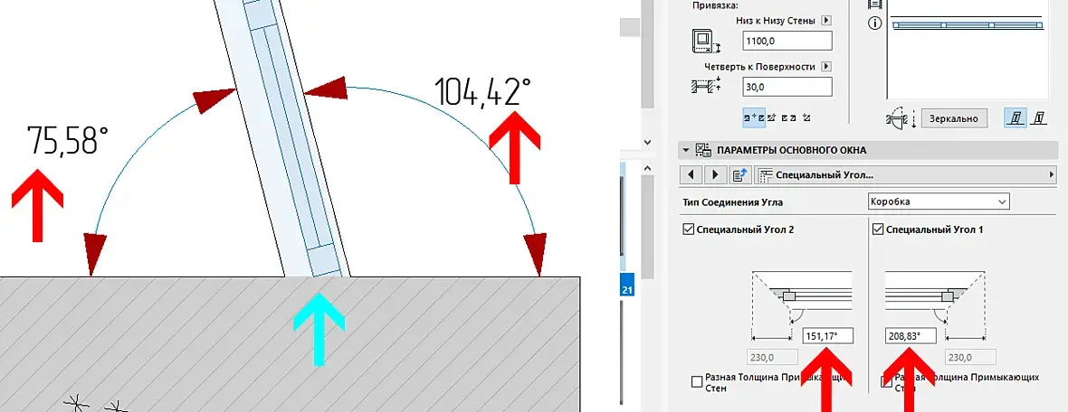 В плане измеряю, одни градусы в параметрах приходится (методом тыка) указывать другие.