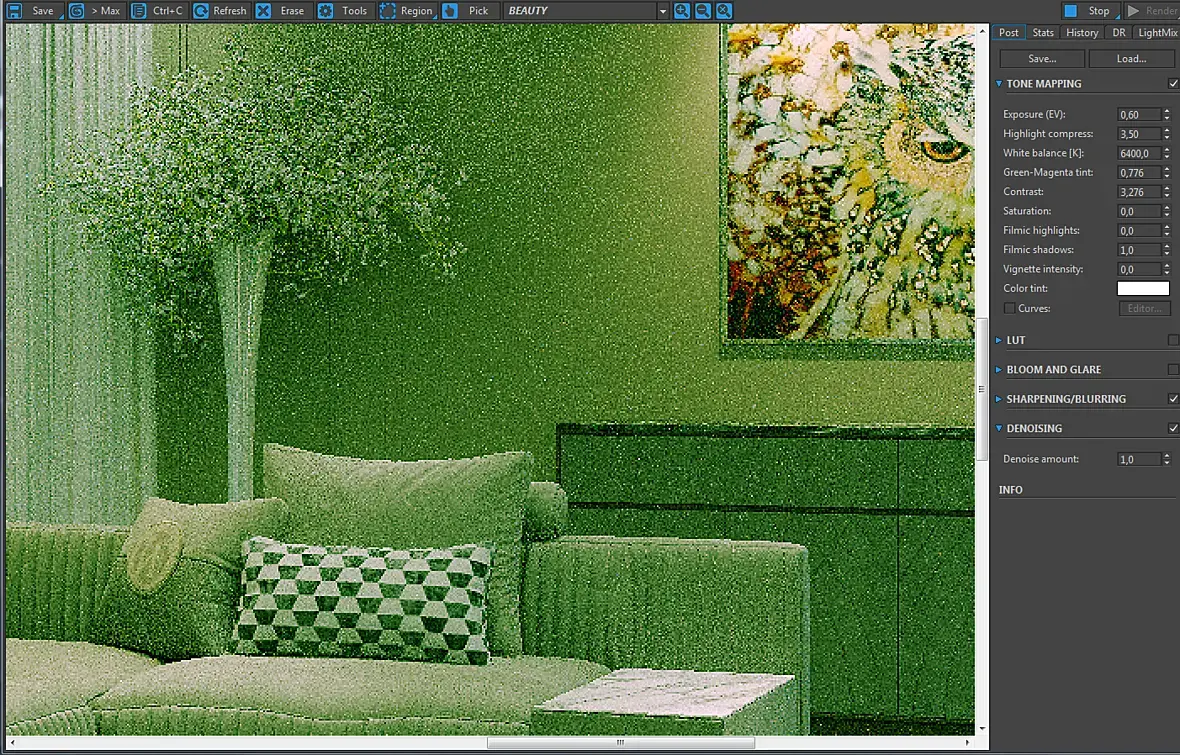 Ой, посмотрел внимательно - это, скорее всего, вы shadow color на зелёный поменяли, найдите где он там и на чёрный обратно смените. Я это по тому что пол белый, а тень на полу зелёная предположил.