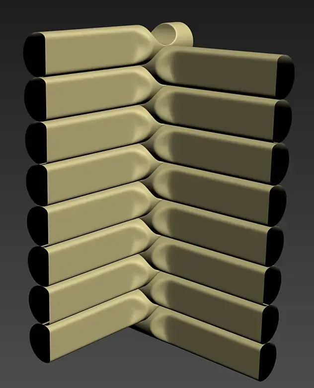 Предстоит задача собрать сруб бани из неоцилиндрованного бруса, визуализация снаружи и внутри. Возник вопрос, как смоделировать протёску бревен внутри. Картинка - пример: