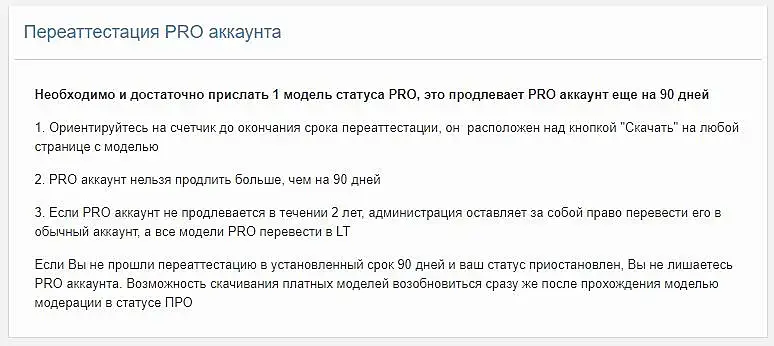 Если два года не подтверждать статус PRO то все модели переводятся в LT, с пользователя снимается статус. и чтобы его получить, то придётся опять моделировать 10 про и 5 непро.