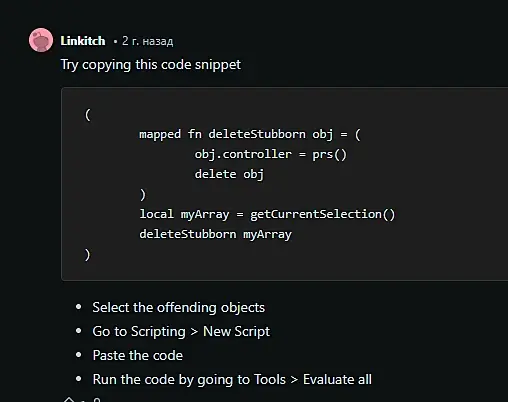 зачем этачить то что нужно удалить? зачем пытаться выделить на уровне вертексов то что улетело или вообще пустое? да и этачить можно из списка без выделения. просто объект выделите и нажмите делит, либо мердж в чистую сцену без этих объектов. что вы пытаетесь сделать не понятно. скрины полностью показывайте, нам не нужны вырезки того чего вы видите, мы же и масштабм могли увидеть,еслиб был координатный блок и другие вещи, раз уж просите помощь то предоставляйте больше информации хотя бы на скринах. модели очевидно из кад софта там много мусора бывает и не правильного масштаба