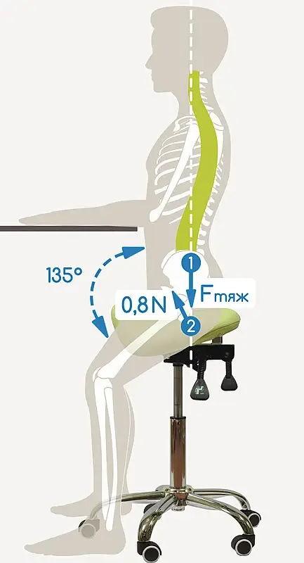 По поводу спинки - там вроде есть модели и со спинкой. Но тут как раз речь именно о правильной посадке - например в седле на лошади спинка-то не нужна совсем и люди долго там могут кататься. Между линией спины и бёдер не 90 градусов, а 120-135 и седло наклонено вперёд. Сохраняются естественные изгибы спины, а сама спина не скругляется.
