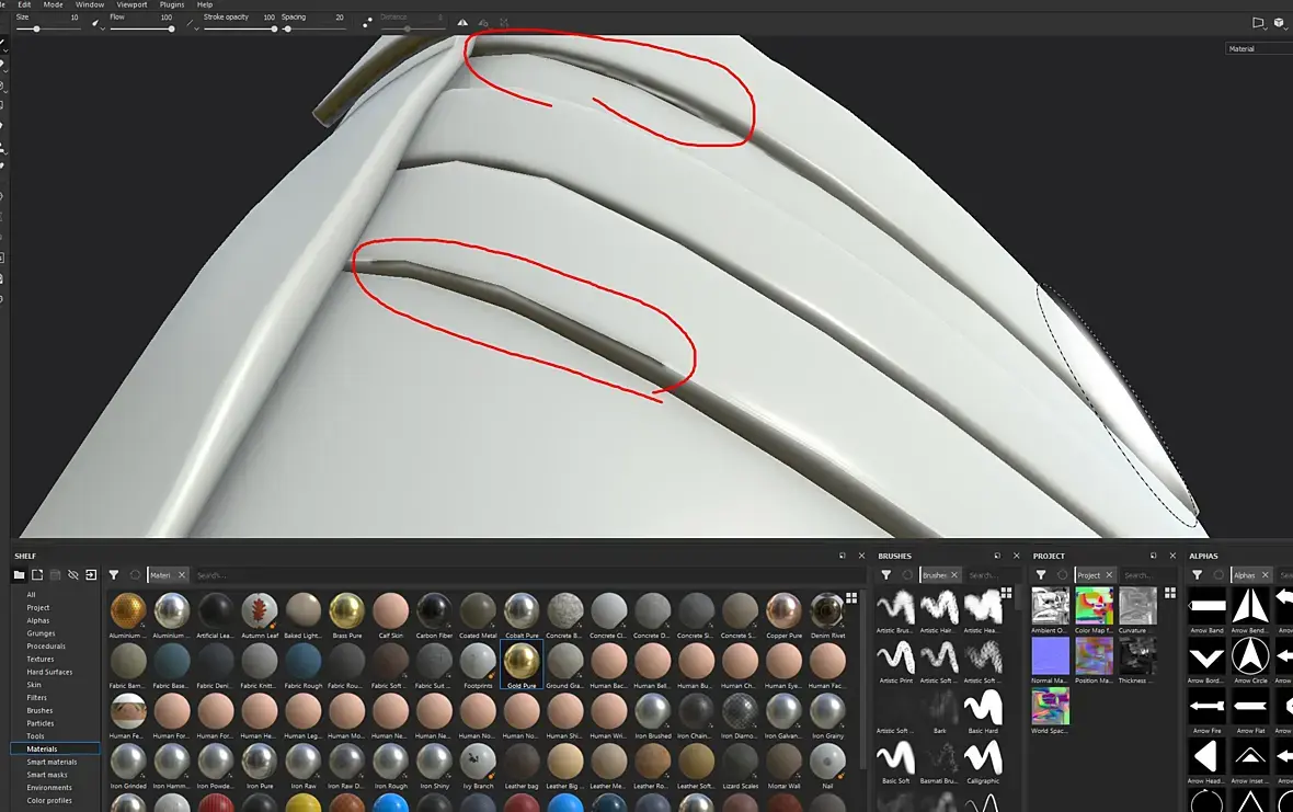 Добрый день, подскажите, пожалуйста, по какой причине могут появляться вот такие артефакты при запекании high poly модели на low poly? Частично smoothing groups исправляет этот артефакт (это вообще влияет на что-то при запекании? И если да, то на какой геометрии low или high?), где-то правка развертки помогла. Но до конца избавиться от него никак не получается. В сложных местах еще можно было бы списать, на то, что развертку фигово сделал, но есть совсем простые детали вроде петли на язычке, где этот косяк ну вот никак не хочет решаться. Похоже, что это проявляется на местах швов развертки, но на первом скрине артефакты не только на швах. Плотность пикселей более или менее равномерная, поэтому не очень понимаю почему это так проявляется в некоторых местах. Есть ощущение, что просто не в том месте проблему ищу.. Заранее спасибо за подсказку.