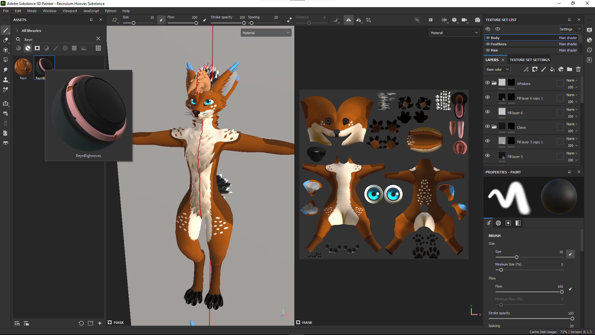 3. Загружаете вторую лису, накидываете на нее запеченную карту основного цвета с пергвого и использете ее как цветную маску или как ориентир на рисовани масок заново.