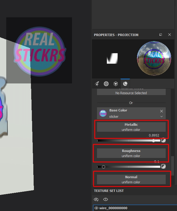 Создаёшь альфу по этой пнг картинке в фотошоп например(1), загружаешь эту чб альфу в SP(2), при помощи Projection закрашиваешь свой стик(та, что пнг цветная на слое), создаёшь маску на слое(тут главное ничего не сдвинуть, то есть камеру не крутить(3)) и в маску кидаешь ту чб альфу в Grayscale, закрашиваешь стик (уже на маске)