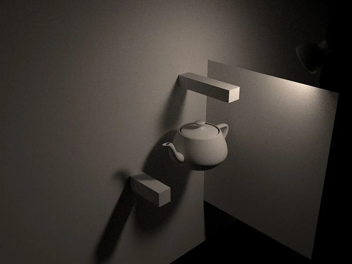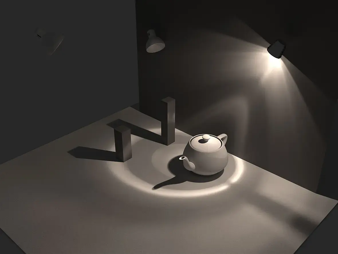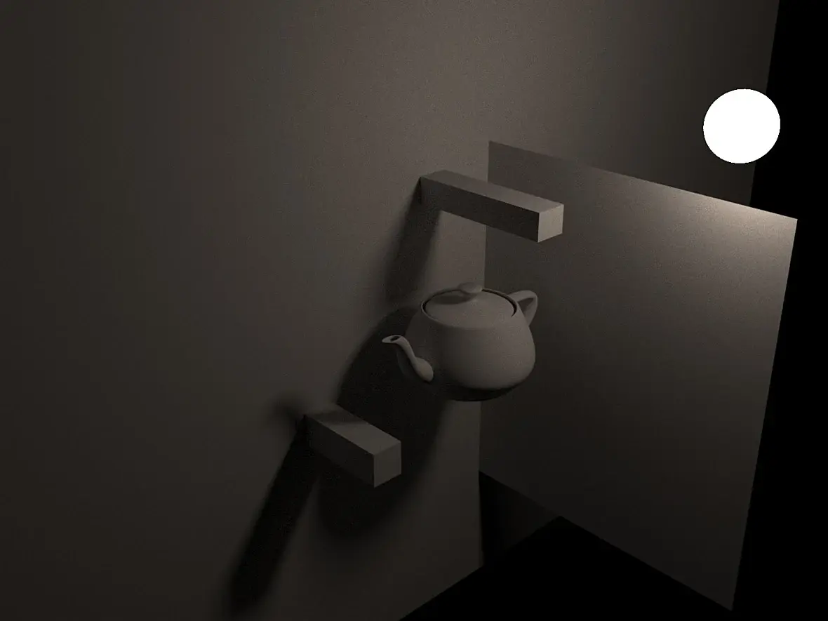 Станартный рендер со стандартным источником света. Чёткое начало тени и оно как градиент.