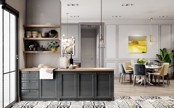 Включил споты (disk 40 mm). Появились тени. Но они все равно слабенькие. + пропали тени у молдингов на стене. Сцена засвеченной становится. Не яркой, а бледной и засвеченной. Хотя контраст стоит на 4.
