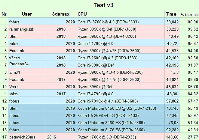 Я бы Cinebench не доверял на 100% в данном контексте. По результатам на данный момент разброс в максе по времени гораздо больше, чем в Cinebench.