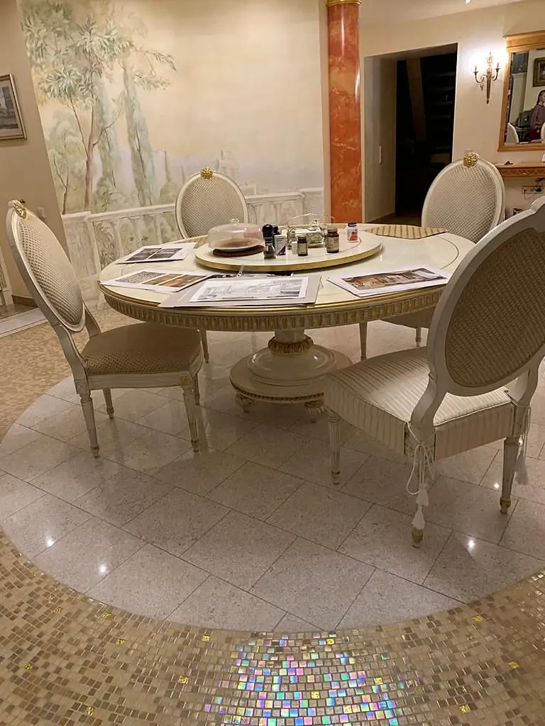 Добрых времени суток. Кто нибудь может подсказать пример мозаики,приведенной на картинке? не обязательно точь в точь, сочетание белого с золотым узором. Хотя бы производителя, необязательно текстуру. Спасибо