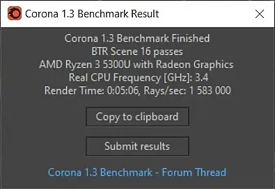 Corona 1.3 Benchmark Result: 0:05:06