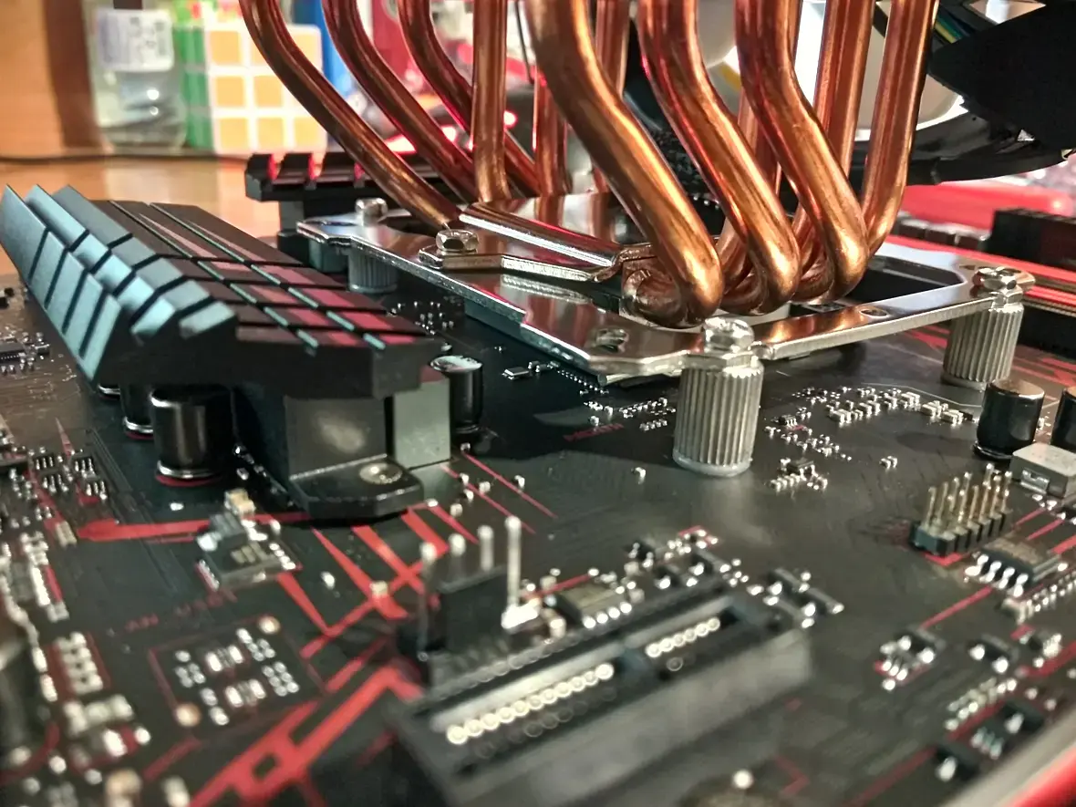 Здоровенный кулер на проц, конечно. Я взял кулер поменьше и осталось место, чтоб приделать на мебельный уголок к вытяжному вентилятору 60мм кулер для обдува vrm с управлением от материнки с максимальными оборотами около 60%. Теперь иной раз температура vrm ниже температуры проца=)