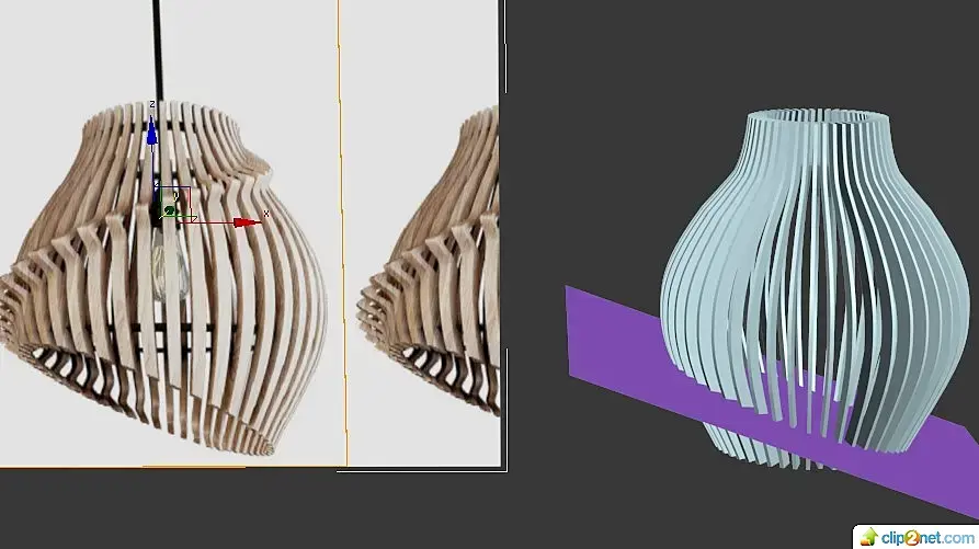 DoCentttt это проще делается. Сначала надо сделать одну прямую рейку с бороздой, потом размножить ее круговым массивом с подъемом по оси Y, объединить все рейки в один poly (или просто накинуть общий модификатор "edit poly" на все рейки). выровнять концы реек в общую плоскость, модификатором "FFD cyl" придать выпуклую форму, модификатором "slice" сделать косой срез.