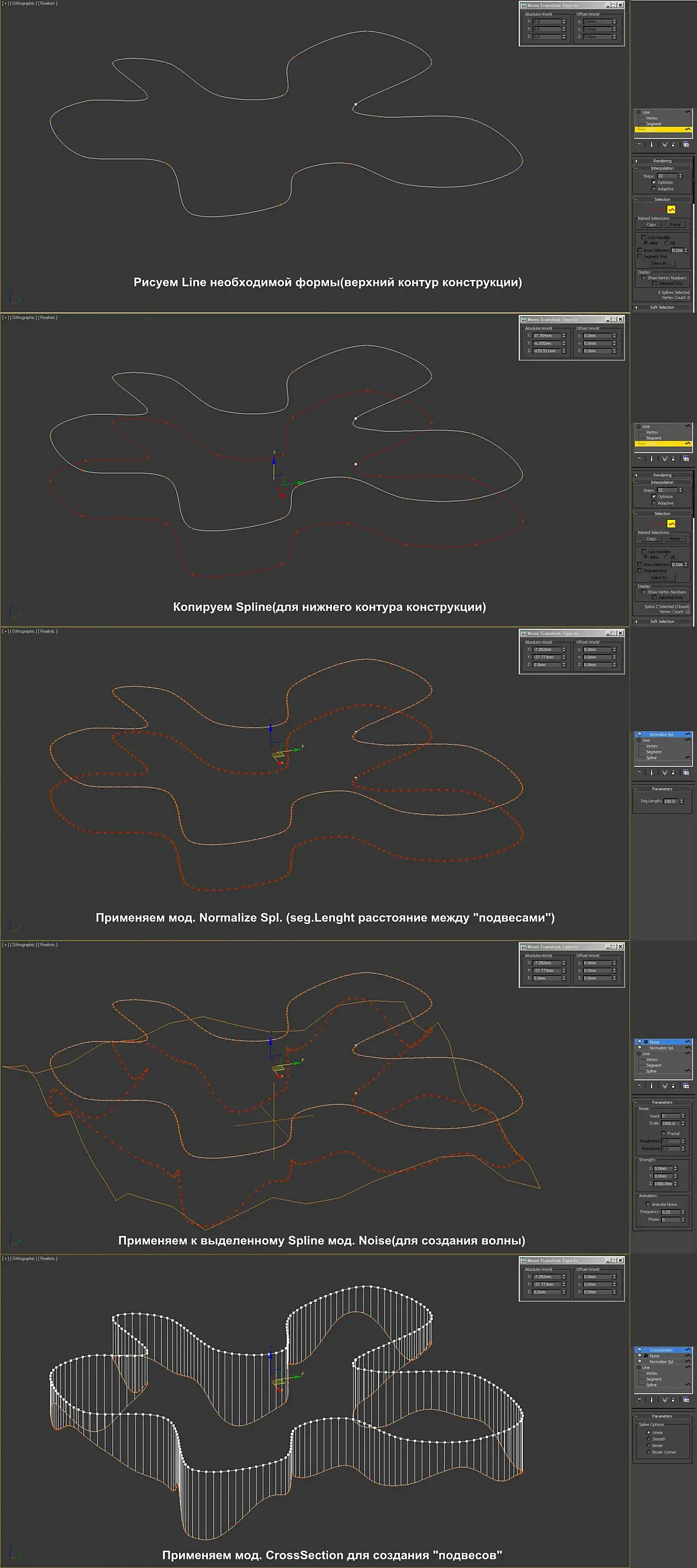 1 - рисуете сплайн на плане. без высот. ТАК чтобы он выглядел правильно.