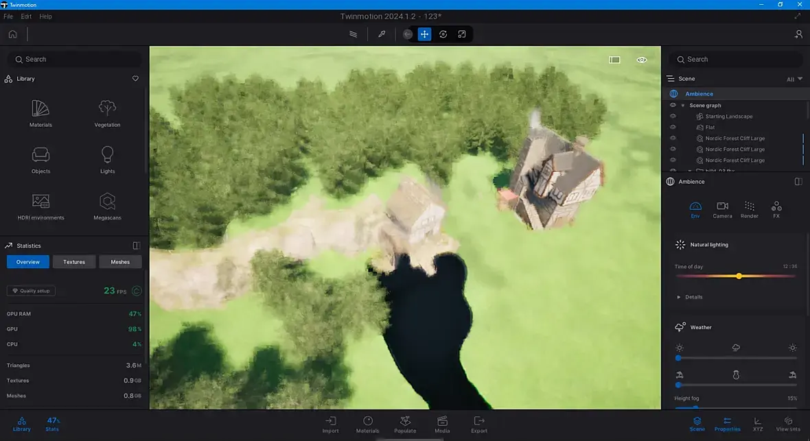 Здравствуйте! Не так давно начала работать в Twinmotion (версия 2023.2.4, модель из ArchiCAD 27) и столкнулась с проблемой - не могу настроить время, нужно сделать ночной вид. Global lighting не двигается, настроен на 10:30, и почему-то не получается скачать другие hdri карты. Подскажите, пожалуйста!