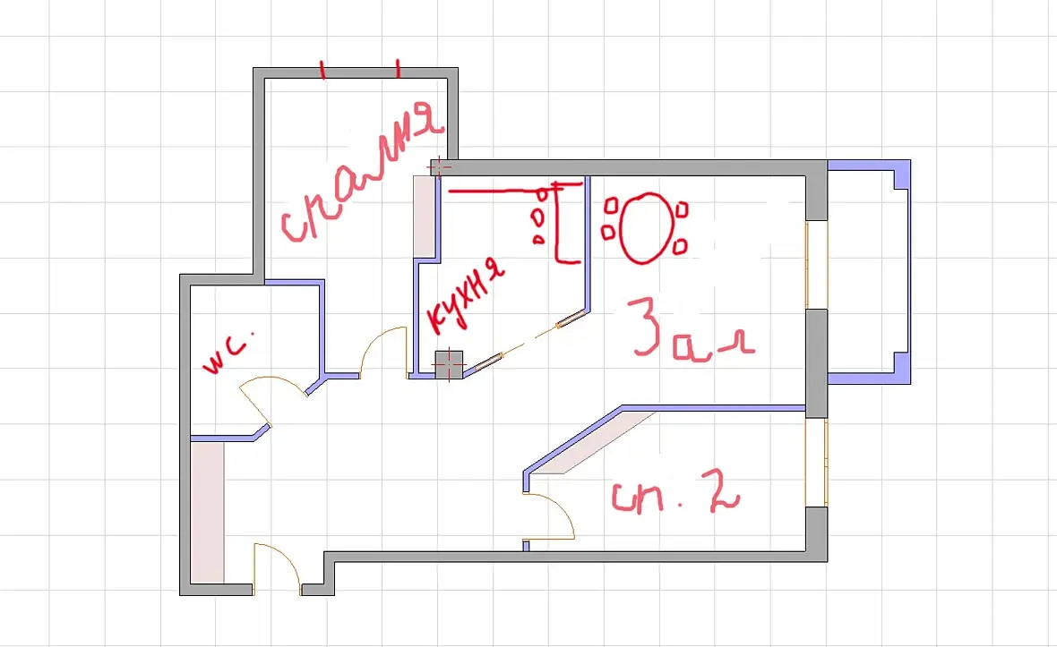 PS если на схемке клеточка - это метр, то в обеих спалнях кровать не войдет.