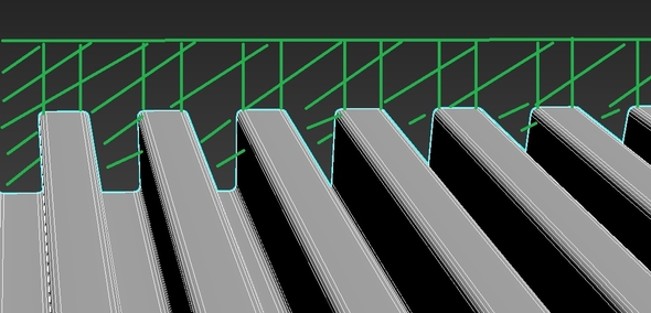 я просто взял кусочек, сделал на нам правильную геометрию, и продублировал этот кусочек вдоль всей прямой: