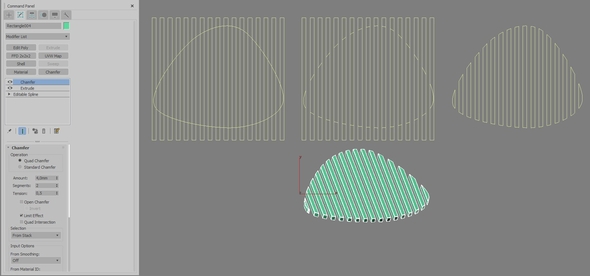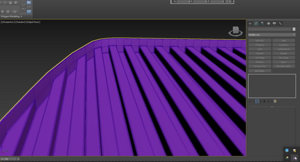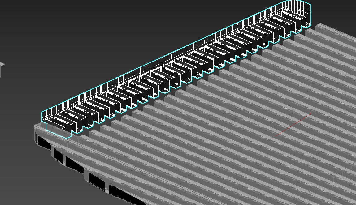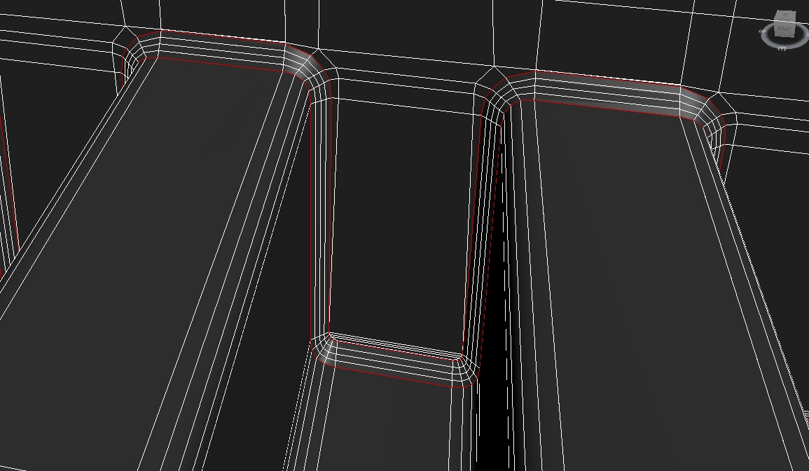 Сетку я делаю такую чтобы потом применить Chamfer в тех местах где рейки упираются в боковую стенку: