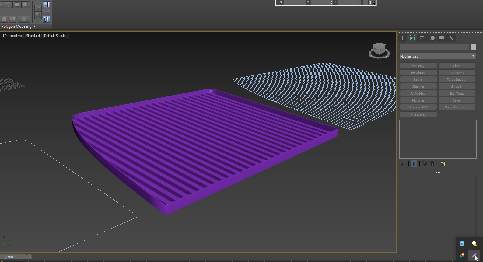 Делаю рельефную поверхность, и контур будущего объекта в виде сплайна (моделирую половину "решетки" от кофейного аппарата, т.к. потом просто накину симетрию):